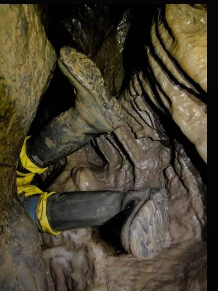 After the squeeze came a series of slippery rope climbs, each one demanding focus and steady movement. The rock was damp and polished from previous passage, meaning every handhold had to be tested carefully before committing weight.
