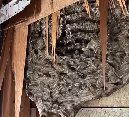Behind the broken drywall was a massive, sprawling wasp nest. Not a small cluster hidden in an attic corner, not a modest hive — a monstrous colony, clinging to every stud from floor to ceiling.