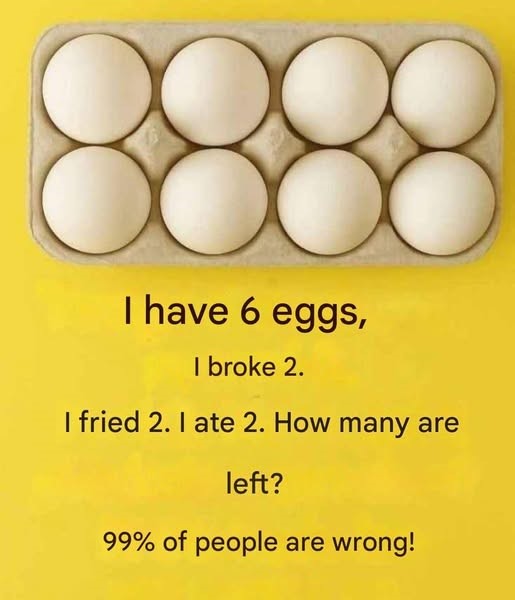 Have you ever seen something so simple that it makes your head spin? This viral image is doing just that: a box of six eggs with a deceptively innocent text. Most people guess wrong—some say 0 eggs left, others 2… even 4! But what’s the correct answer?