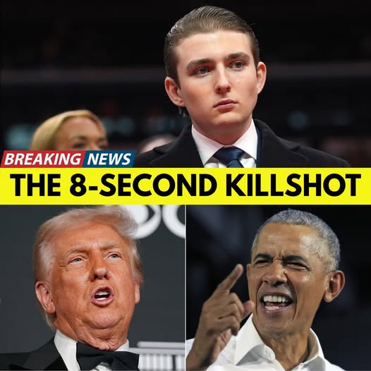 As Donald Trump’s proud smile began to fade into a mask of rising anger, Obama masterfully flipped the focus of the conversation. He pivoted from the topic of “viral moments” to the “substance of family and identity.” The studio fell into a deathly silence as the former President shifted his gaze from the son in the audience to the father on the stage. What followed was an 8-second verbal strike that will likely be studied for generations—not for its volume, but for its devastating content.