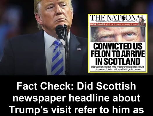 People online claimed that the front page of The National said: “Convicted US felon to arrive in Scotland.” A Reddit post included an image of the front page with that headline and said, “Trump is expected to arrive in Scotland tomorrow. This is the front page of The National.”