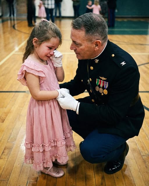 Twelve Marines walked in, their uniforms crisp, their presence commanding. At the front stood General Warner. He moved straight toward Katie and knelt in front of her.