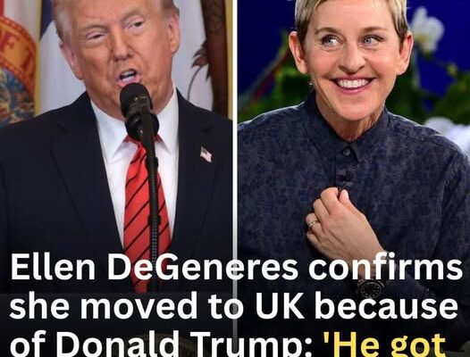 Originally, they were going to split their time between the US and the UK. But that plan changed after Trump got reelected. Ellen told the crowd about the moment they landed in the UK just before the election.