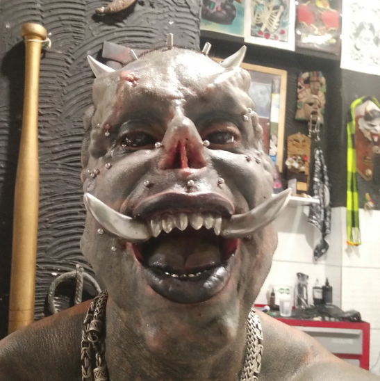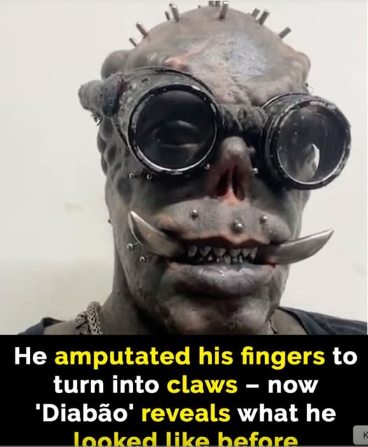 With horn implants, tattooed eyeballs, sharpened teeth, and subdermal implants that reshape his face into something truly otherworldly, Diabão isn’t just modified—he’s transformed. His entire identity is wrapped in his dark, devilish persona, and he’s proudly shared every stage of the journey with over 300,000 followers on Instagram.