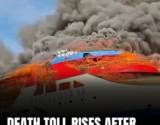 Video recordings show terrified passengers clad in bright orange life vests clinging to the side of the burning ship before being forced into the water. One woman is seen sobbing uncontrollably as chaos unfolds.
