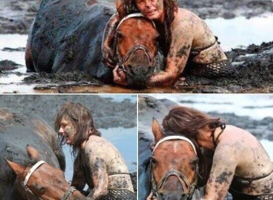 Nicole didn’t think twice. She rushed to her horse’s side, wrapping her arms around his neck, whispering reassurance as the rising tide crept closer. Every minute, the wet clay tightened its grip, dragging Astro deeper. His breathing grew ragged, his legs trembled. The clock was ticking.